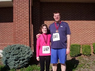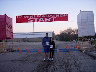 Ali and I went to Bloomington, Indiana to run a half marathon. This is us at the starting line on a frigid 36 degree morning (7:30 am).
