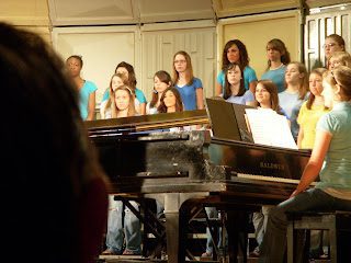 All eye's on the conductor (at least Brittney is paying attention) for difficult song arrangements sung in Latin.