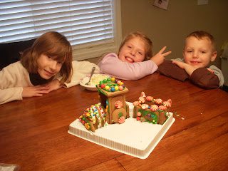 Merinda making a ginger bread train with her cousins Emily and Sam.