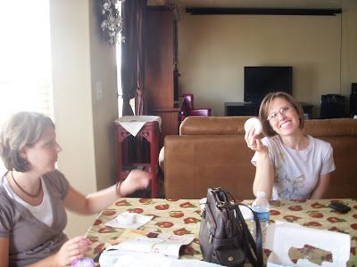 We had a fun time eating good food, like raspberry-filled donuts (not available in the South or Midwest), and getting our hair done (notice my hair before, in the first picture, and after, in this picture) compliments of Mom and her salon.