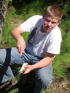 Breck was thrilled to learn how to put (and keep) a worm on a hook, and gut a fish (the expression on his face says it all).
