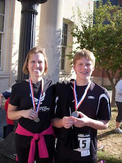 Since Brad sprained his ankle a few weeks ago, at the last minute I had to recruit a new partner to run our town's 5K with me.