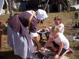 The Fort is a fun place to visit because it is truly like stepping back into time. Here, Merinda is looking at dolls, and playing with wooden toys that were popular in the late 1700's.