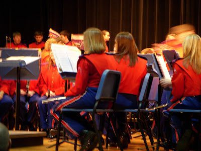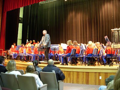 Aubrey's Christmas band concert was held at the High School, but the band is so large they have two separate concerts. The conductor, Mr. Bronner, threatens to retire every year. It is increasingly difficult for him to get around due to bad knees (thus the handrail on his stand). For the first time in fifty years or so, the Concert band was chosen as an elite band to represent Kentucky in Chicago, at the Midwestern band competition and symposium. I have to admit that the band did sound pretty amazing! And just maybe, this will be Mr. Bronner's ticket to retirement.