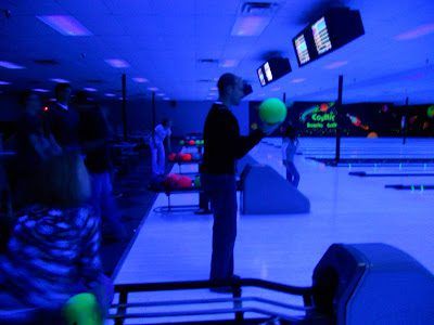 For New Year's Eve we had a great time bowling with friends at Cosmic Bowling alley (the lights go off in the evening and everything, including the balls, are glow-in-the-dark). Here is our friend Mark Allen getting ready to bowl a strike (incidently, Mark and Bridgette's team won our friendly competition due to their amazing bowling skills).