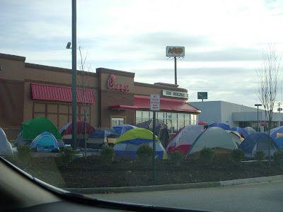 The thing that came to my mind as I viewed my pictures at the start of 2011 is the randomness (I know this is probably not a word) of the pictures and subject matter. Now, I have seen this kind of picture before a big concert or game, but never in my life have I seen people camping out for the opening of a restaurant, and a fast food restaurant at that! First of all, I say to myself, "only in Kentucky" and then I think, "what has this world come to?"