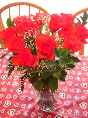 Several years ago this might have been a random sight, but not for the last few years--beautiful roses from my husband on Valentine's Day (I love my husband!!!).