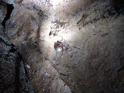The kids said there were spiders crawling all over the walls, I thought they were trying to scare me and I told them good thing it was dark so that I couldn't see any. Just for giggles, I took a picture of the cave wall right next to me and this is what I saw as my flash went off (the spiders are way bigger in real-life!).
