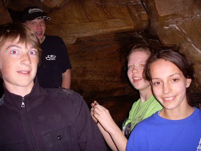 Once inside the cave, it really opened-up, but was still quite dark. I caught the kids off guard as the flash of my camera went off right in front of them.