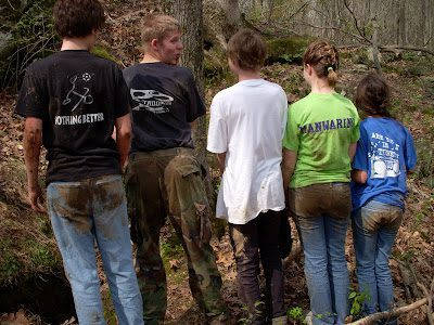 Here is a before picture of the "older" kids: Brittney, Breck, Garren Allen, Wesley Holt, Christina Holt, and Aubrey (and myself behind the camera), as we are about to go out on some cave explorations. Brittney decided to opt out since she ruined her only long pair of pants exploring caves the day before.
