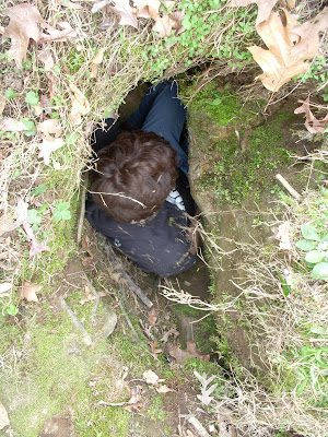 Here is a picture I took of Aubrey as she was climbing out. Notice the steepness of the walls, now add to that lots of mud due to the fact that this has been one of the wettest months on record for the state of Kentucky, and you have a recipe for bones, from trapped animals (and possibly people--like me). Luckily, Wesley was behind me, and hoisted me up and out of the cave!