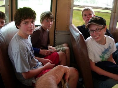 Here we are on the bus ride to Frozen Niagara Cave at Mammoth Cave National Park. It was at the end of our camping trip so we were all a little worse for wear.