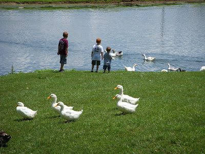 and feeding/chasing the ducks and geese.