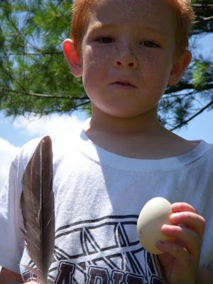 Jaden also found a real egg and feather that he wanted to take home to Texas.