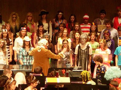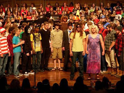 I think I could at least take the Director of the choir a little more seriously. Aubrey (standing behind the girl in attractive glasses) has been in both choir and band this year, so concerts like this one makes things a little easier for me.