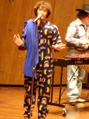 Here is the Assistant Choir Director dressed in PJ's and a blankie.