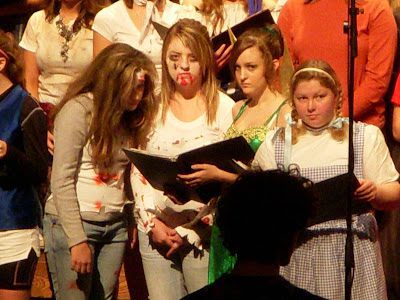 For Halloween this year the High School Band and Choir got together to put on a spooky Halloween Concert. The only thing spooky to me were some of the costumes (see above)!