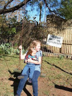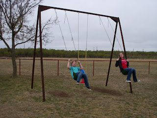 The girls enjoyed swinging on the large swing-set
