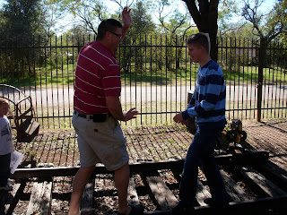 I don't know what was more fun, the railroad tracks, or the old-fashion school yard. Kids of all ages had fun on the unique merry-go-round.