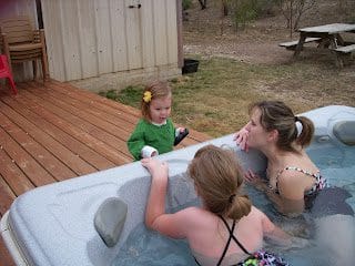 Aubrey and Breck enjoyed soaking in the hot-tub as well--late at night with the music blaring, and a cup of hot cider!