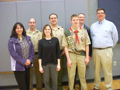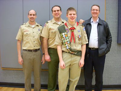 Breck with all of his Scout leaders: I was Breck's Cub Scout (Den) leader, Veronica Holt (far right) was Breck's Webelo's leader and Scout Mentor, and Brad has served as Assistant Scout Master for the past couple of years.