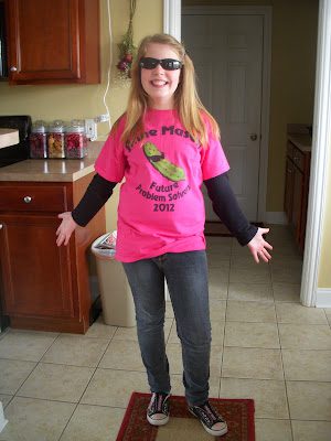 Merinda sporting her FPS attire which the girls designed. There slogan was: I_n a pickle? Just call Ann Mason Future Problem Solvers_. The most exciting part about the t-shirts was seeing if Mr. Mann would wear the t-shirt on competition day (which he did--with pride!).