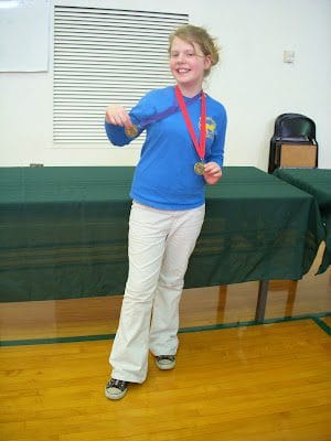 Merinda showing off her medals.