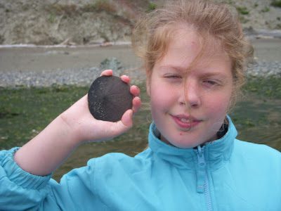 Merinda had fun collecting pretty rocks, shells, and sand dollars.
