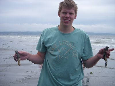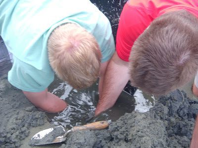 trying with all his (and his Dad's) might to "catch" a Gooey Duck.