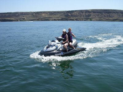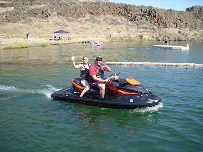 We spent the rest of the day jet-skiing and swimming at "Billy Clap Lake", a beautiful little lake that just springs up out of no-where a midst the red rocks and cliffs (Ephrata has many of these types of lakes). Washington never ceases to amaze me with its diverse climates and terrain. One day we're freezing on the beach, and the next, we're getting fried in the water.