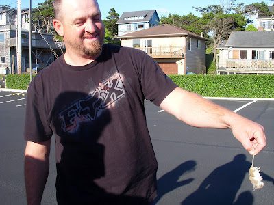 All of Brad's family got together for a three-day Manwaring reunion in Lincoln City, Oregon over the 4th of July. But before we could join the festivities, I told Brad that I would not set one more foot in Grandpa's car (which he let us borrow to drive cross-country) until we figured out what the awful stench was coming from under the back seat, that had already plagued us for a week and was getting worse by the minuet! Jake, being skilled in the art of tearing apart vehicles (from working at the border patrol), found the culprit! Who would of thought that such a small rotting creature could cause such a huge stink!