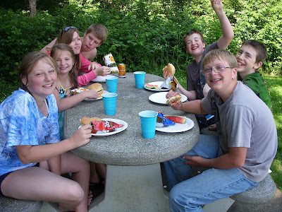 Also at the lake, everyone enjoyed eating watermelon and BBQ hamburgers,