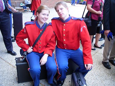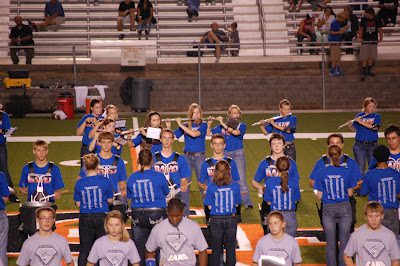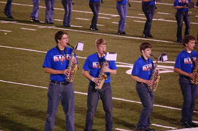 Breck and his fellow saxophone players. This was the first football game of the season. Because of the heat, the kids didn't have to wear their regular band uniforms.