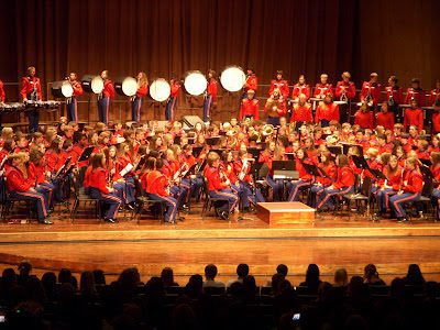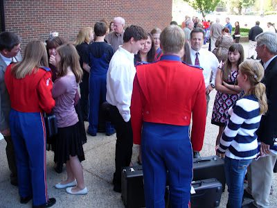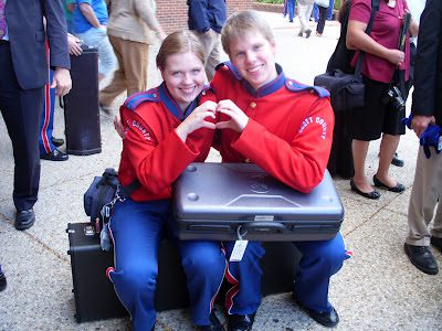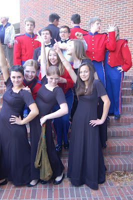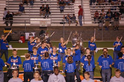 I love this picture of all the band and choir directors holding hands to take a bow. It always amazes me how well the directors of our huge band and huge choir get along, and work together and around each other's schedules. What a great example they are to the students of what it means to work together for the betterment of the school instead of just focusing on their auxiliaries' own selfish goals and desires. To me, the band and choir are the glue that holds the student body together!