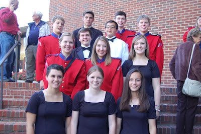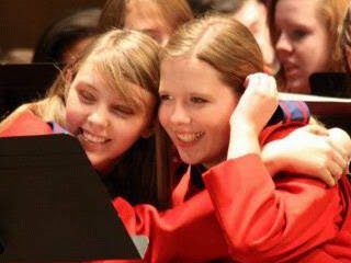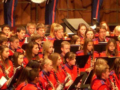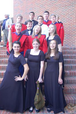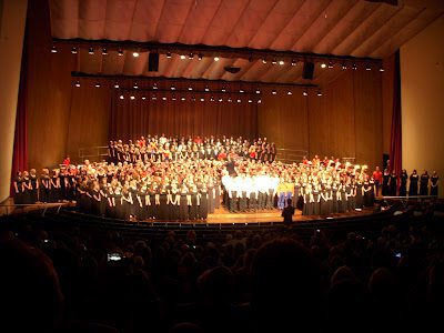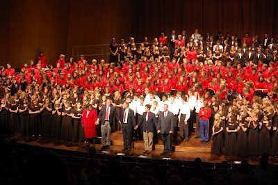 This is a picture of the whole choir. The kids in red dispersed throughout the choir are the kids that are in both band and choir. Aubrey is one of those kids, and it makes for a pretty busy schedule!