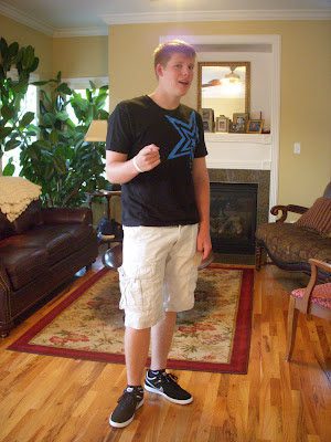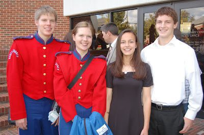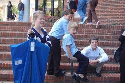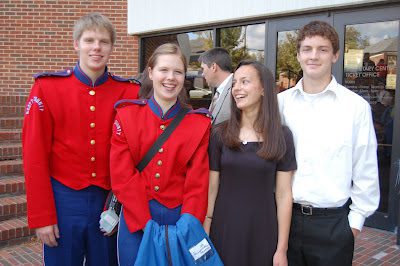 Ahhh, that's better. The case the kids are holding is Breck's alto saxophone, and the case they are sitting on is Breck's baritone saxophone (the "bari sax" is pretty huge).