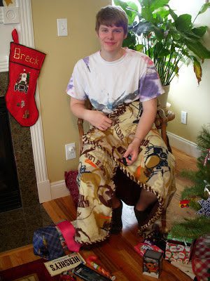 Funny story (o.k. maybe not so funny to Breck) but his favorite gift actually has not arrived yet (Brad could not justify spending a mint to have Breck's electronic gadget arrive in time for Christmas) but at this point we're just hoping it does arrive!