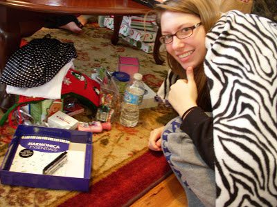 Brittney and her Christmas gifts.