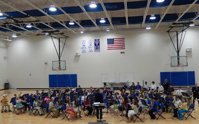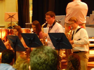 Breck playing the alto, tenor, and baritone saxophones in the top high school concert and jazz bands (and making Drum Major next year),