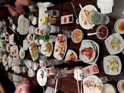 The day ended with an authentic Korean meal. You're going to have to tilt your head sideways to see, but I was proud of the fact that I actually ate this stuff, and even kind of liked it.
