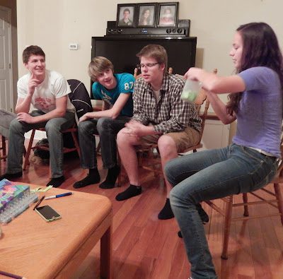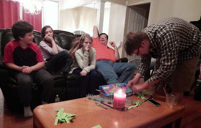 Only this time we mixed the game up with one-word clues and charades. Breck's team definitely had the advantage since he came up with the majority of the names (we will come up with our own next time!).
