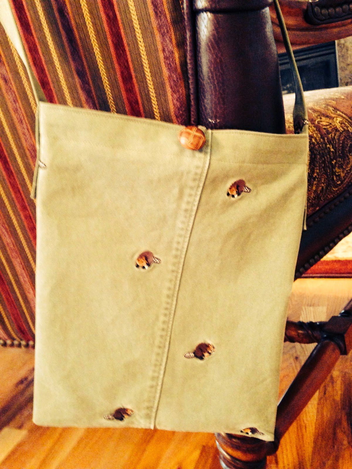 marveled at how Virginia took the scraps of Breck's beaver pants (which she made into shorts) and turned them into a darling satchel purse,