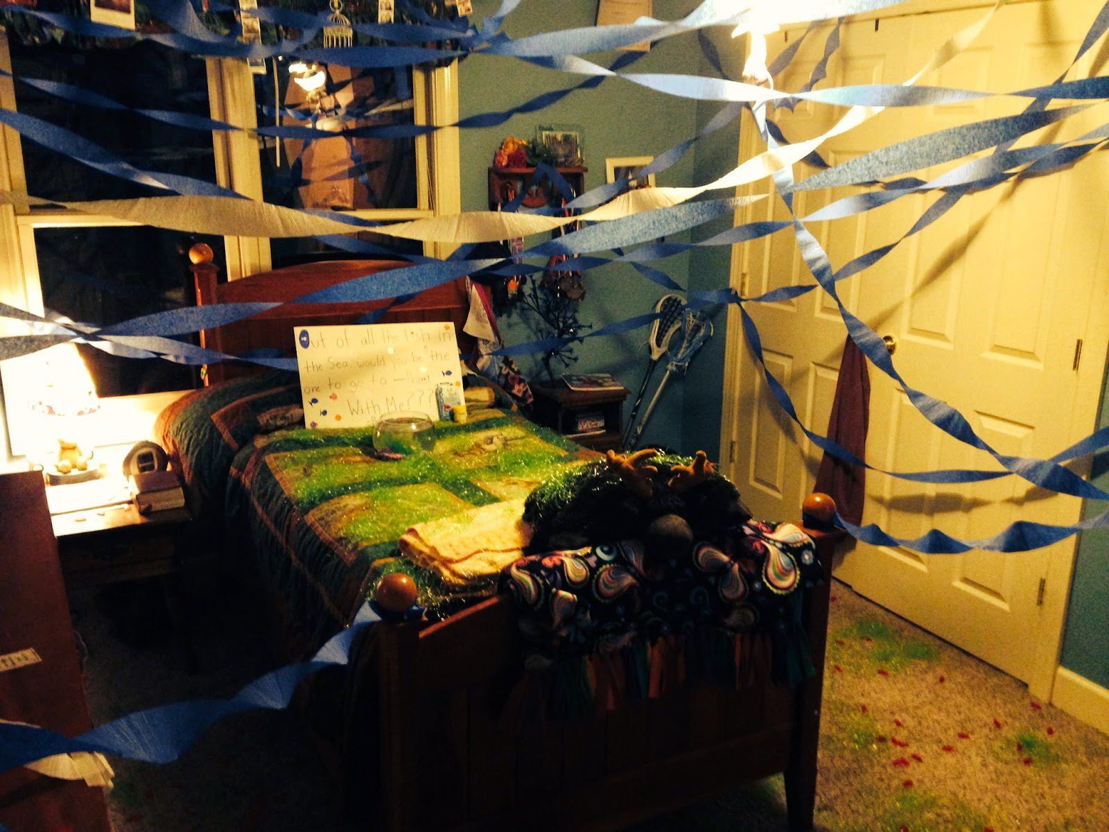 We decorated her room while she was at Youth Night. I was his accomplice AND the one who came up with the idea (ok, Pinterest came up with the idea but I suggested it!).