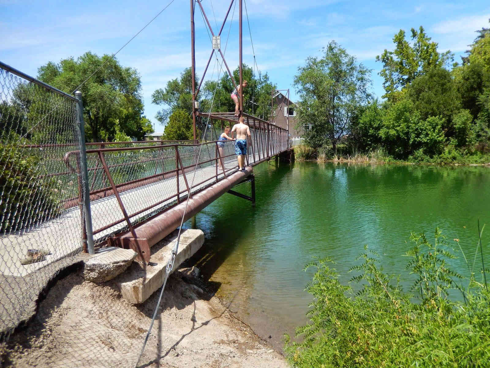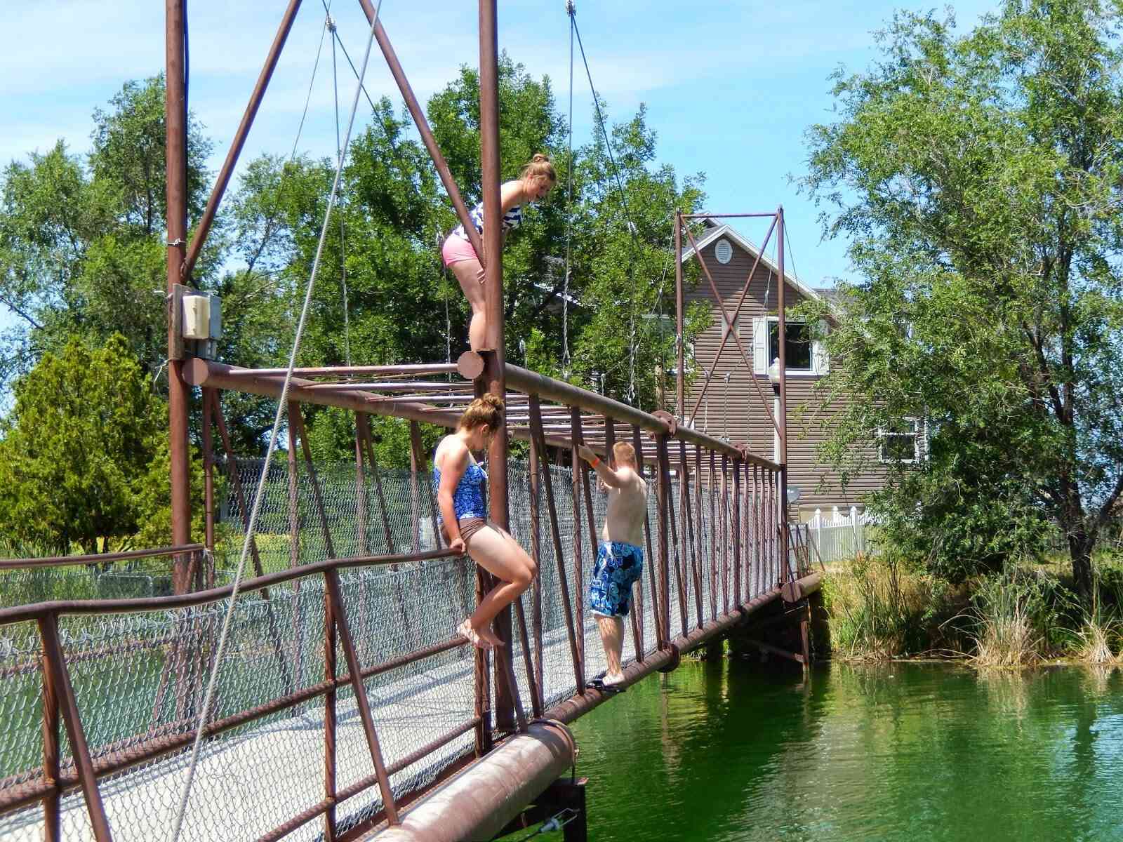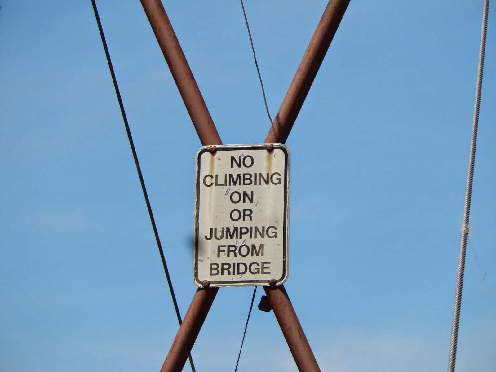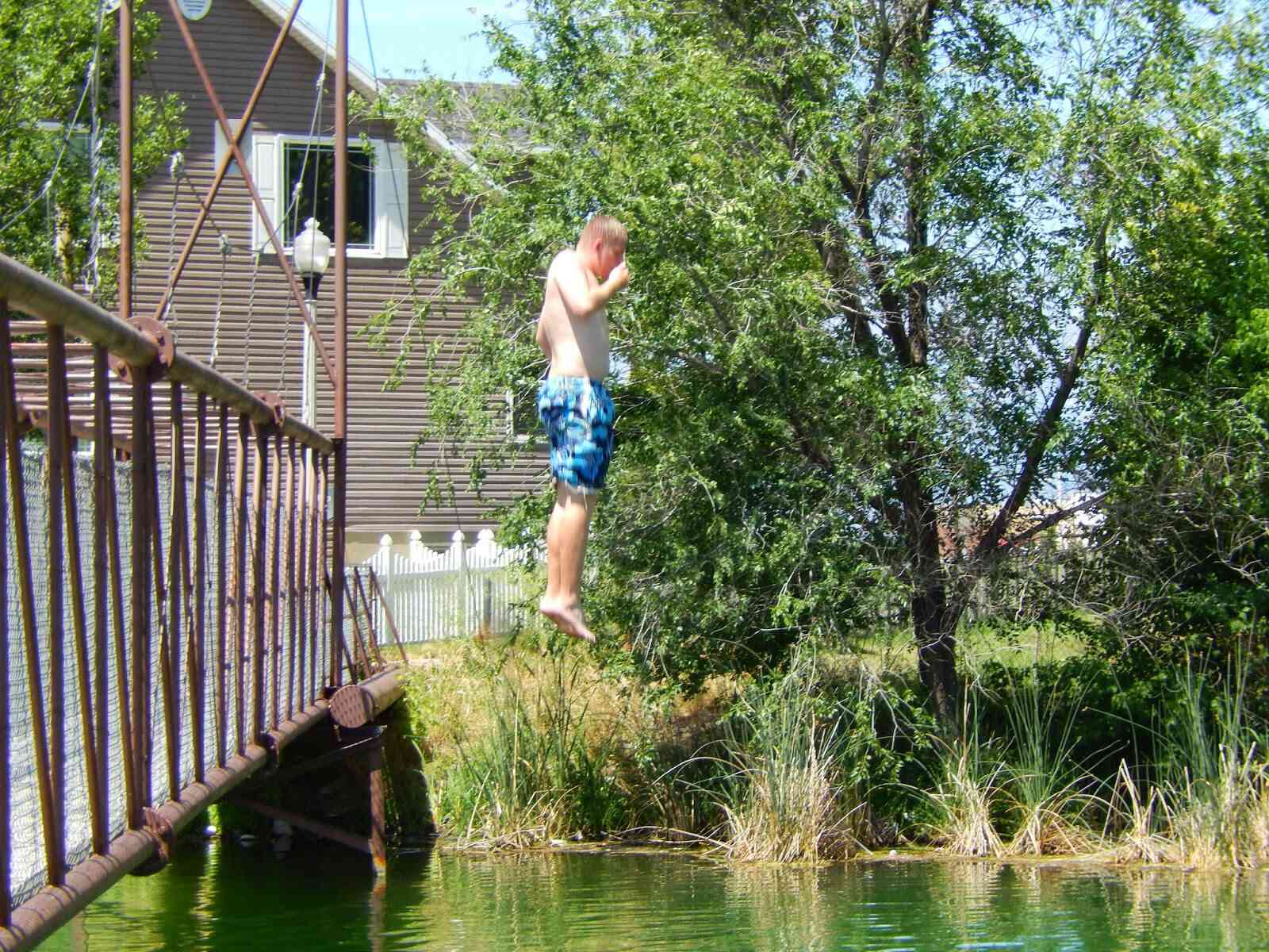 Unfortunately Grandma Heelis sent Uncle Eric over to inform me that the sign on the bridge said, "No Jumping...." I said "What sign?" As all the kids pointed to the very large sign on the bridge.
