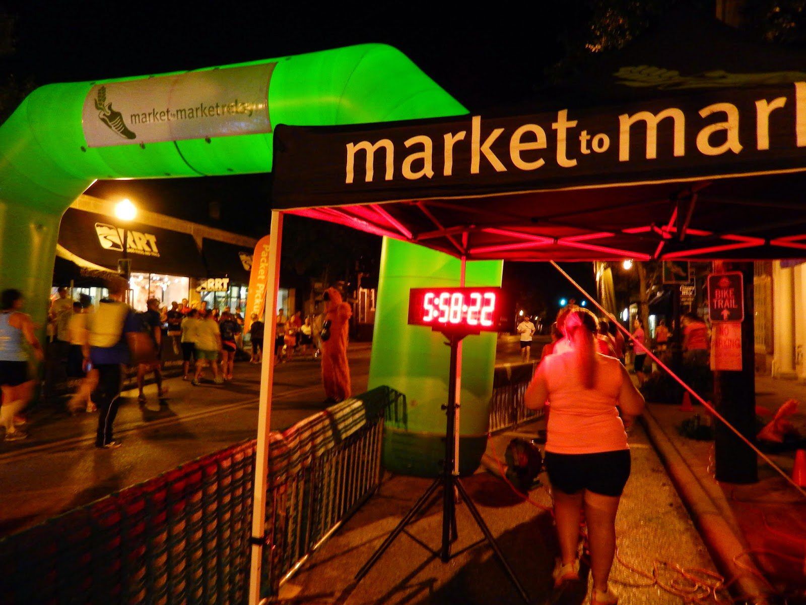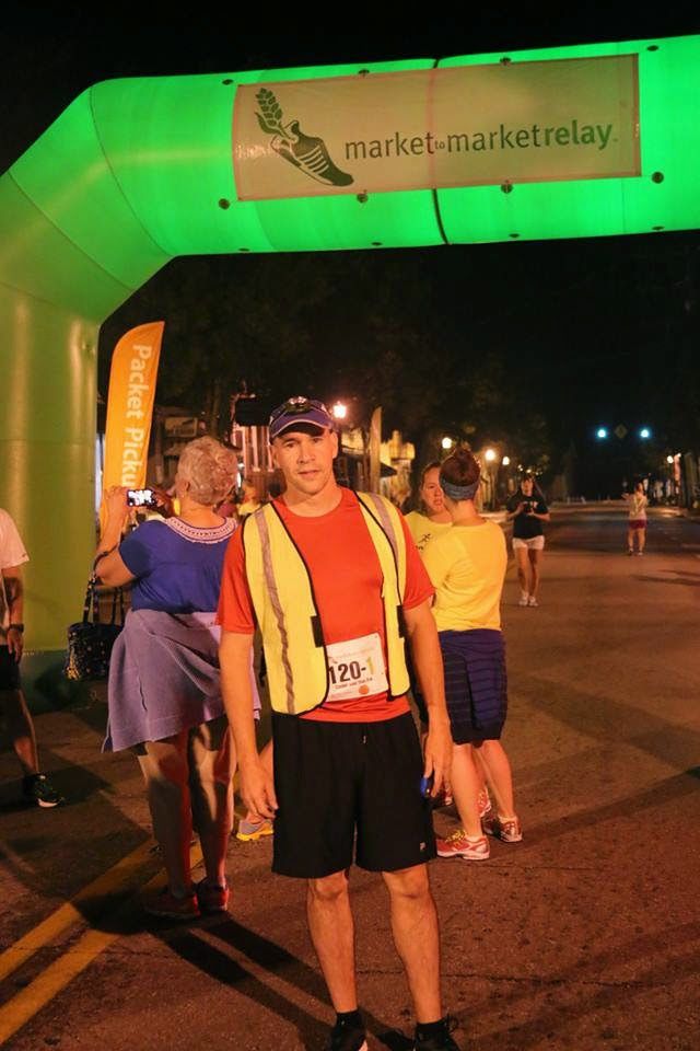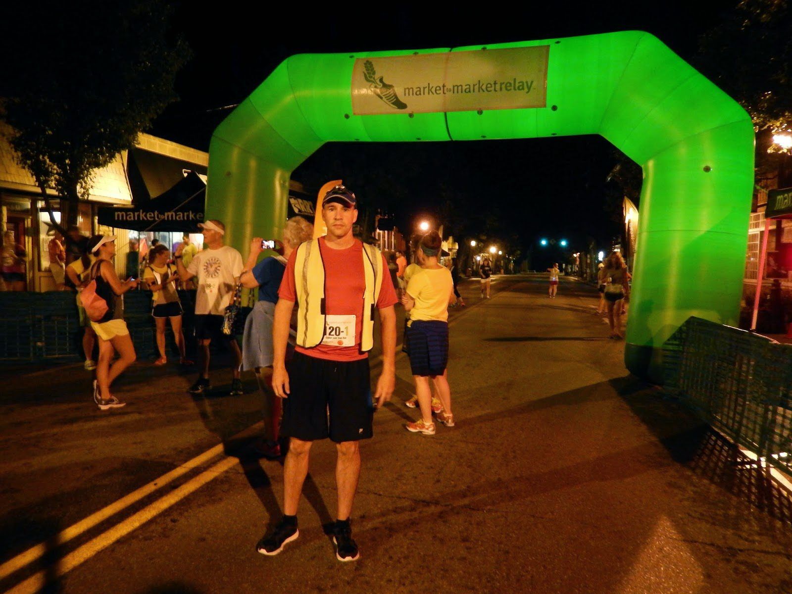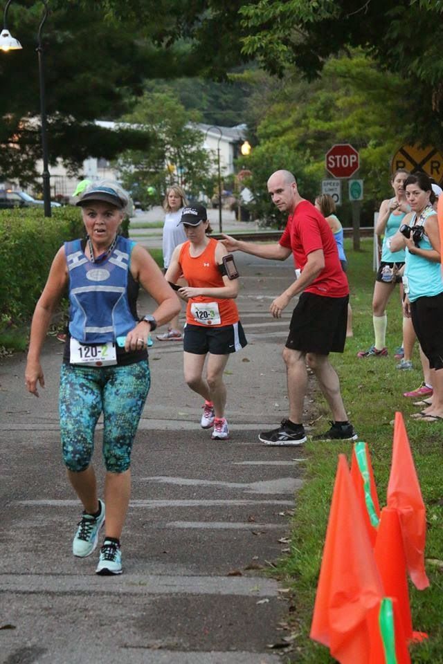 Mark ran a fast pace even in the pitch dark. He passed the baton to Karen Cooper (a last-minuet recruit from Frankfort--thanks Karen, you're the best!), who also had to run in the dark.
