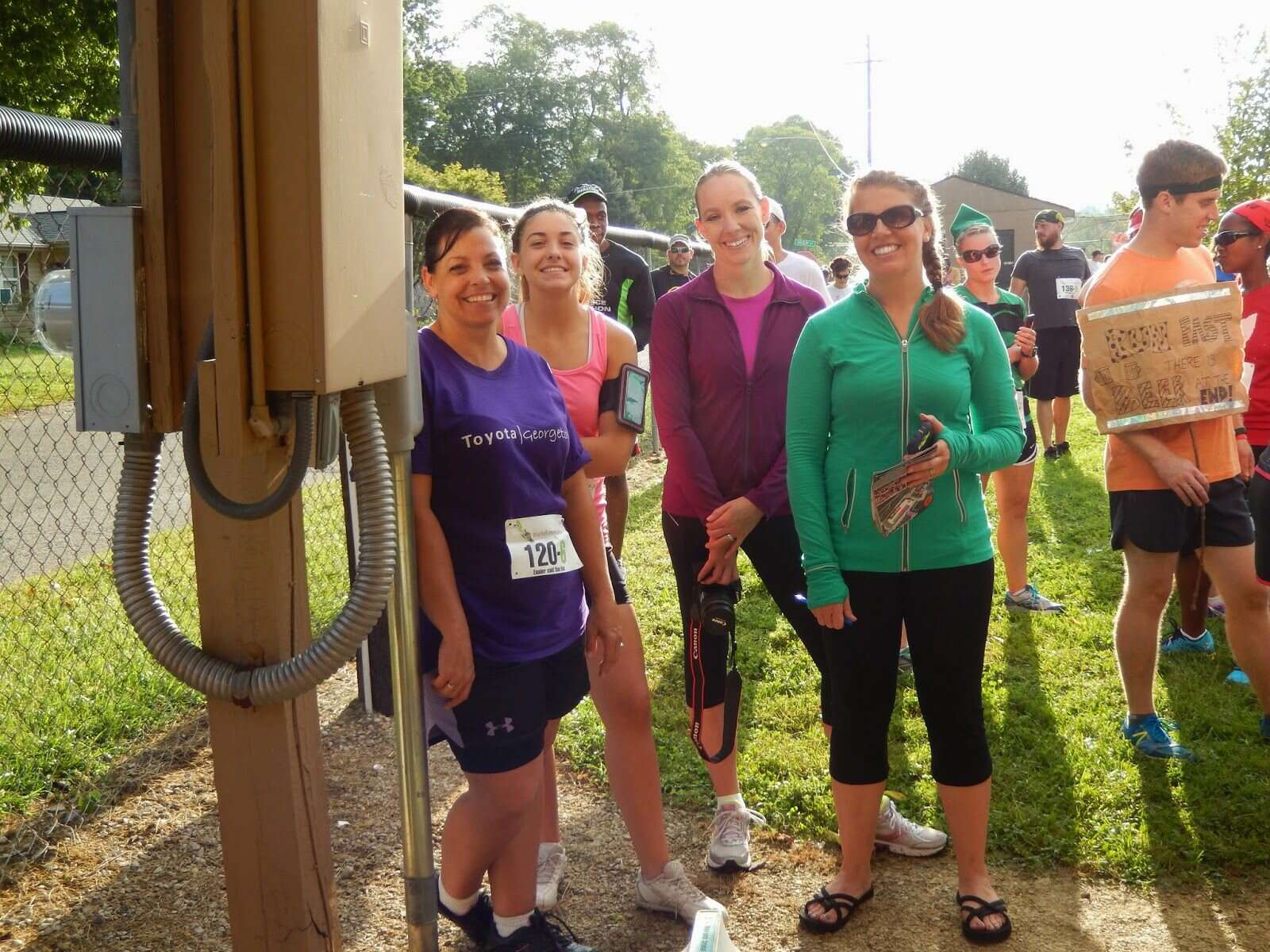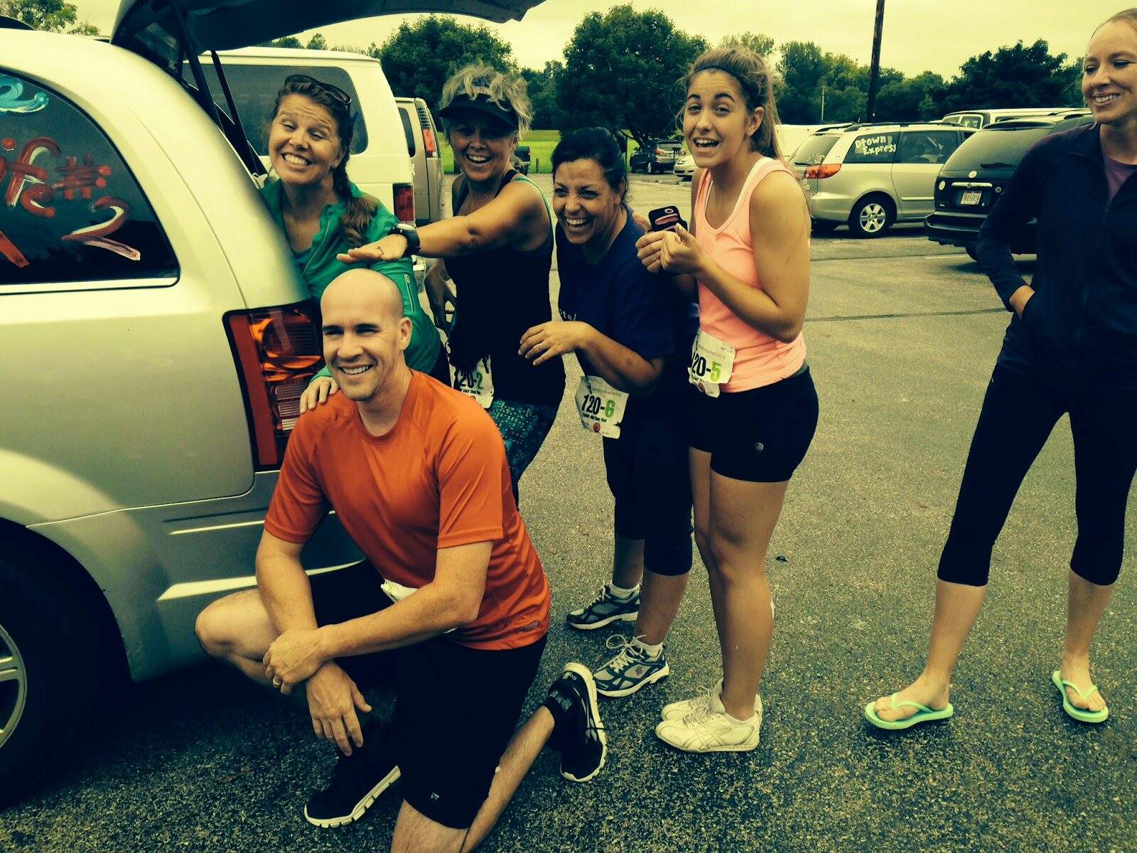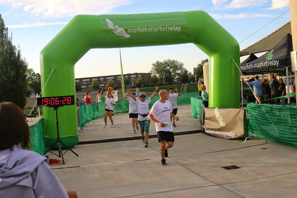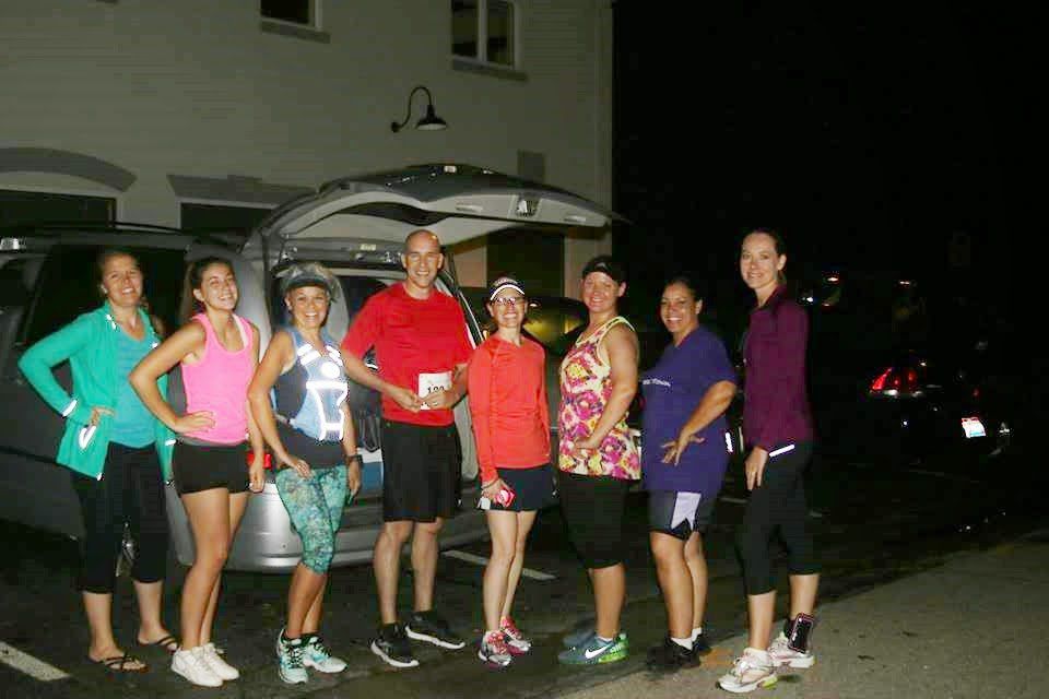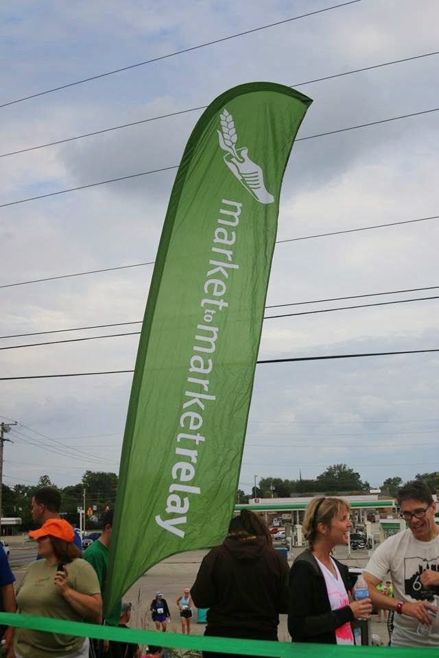 and then walking to the last exchange spot, where we all meat up together and run the final 0.2 miles to the finish line.