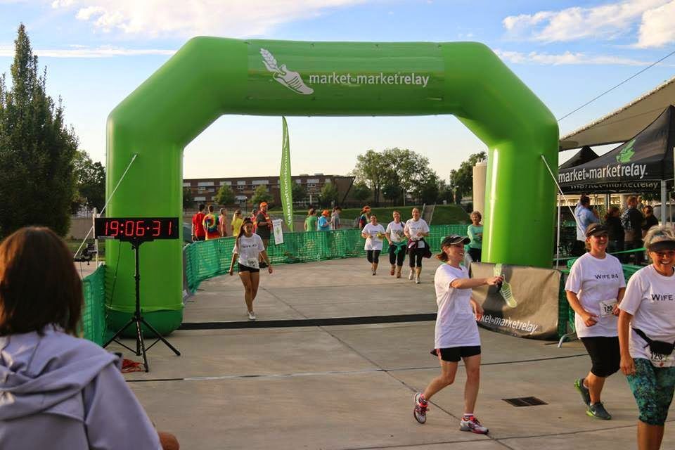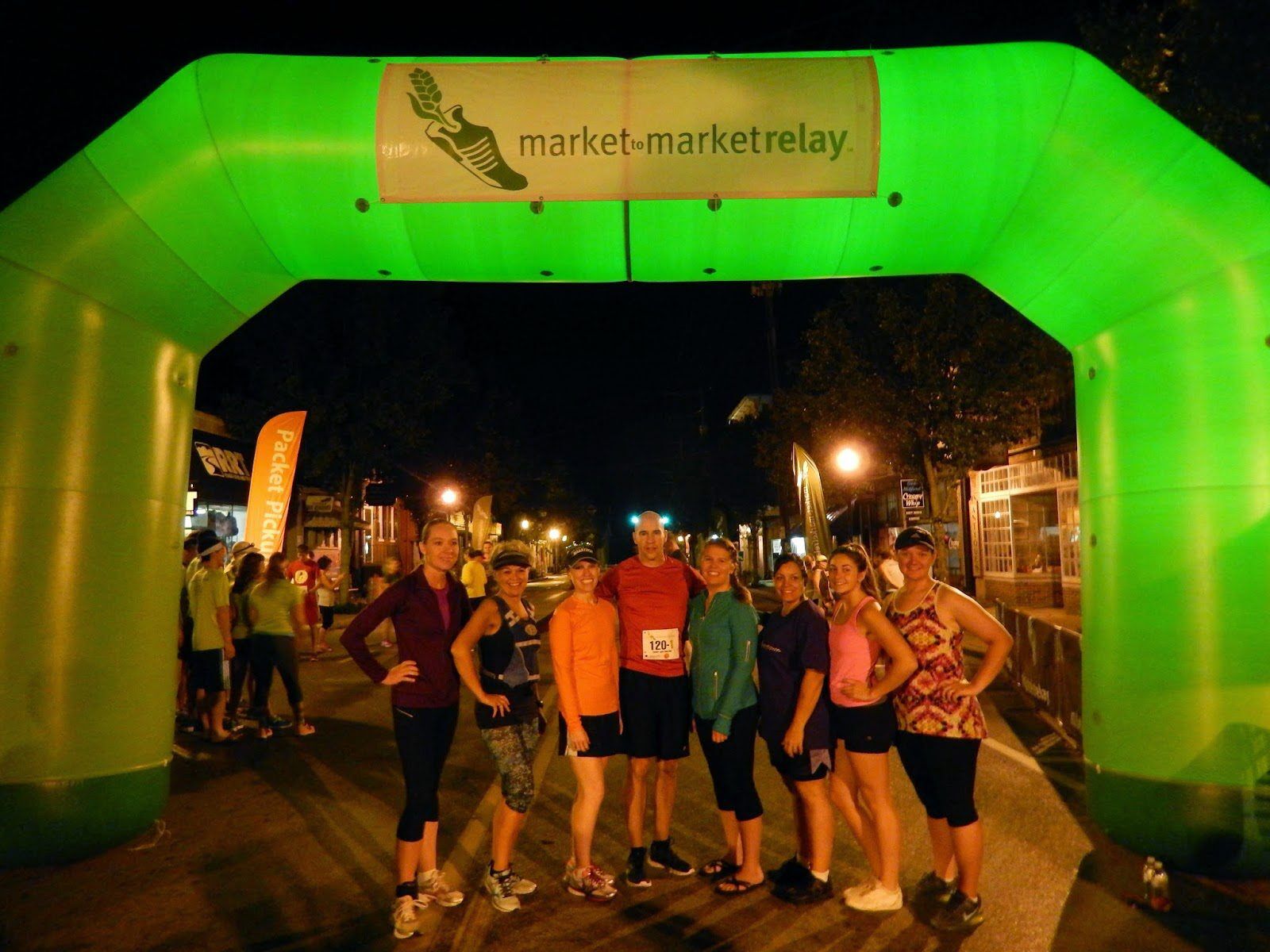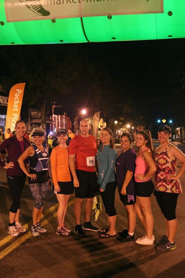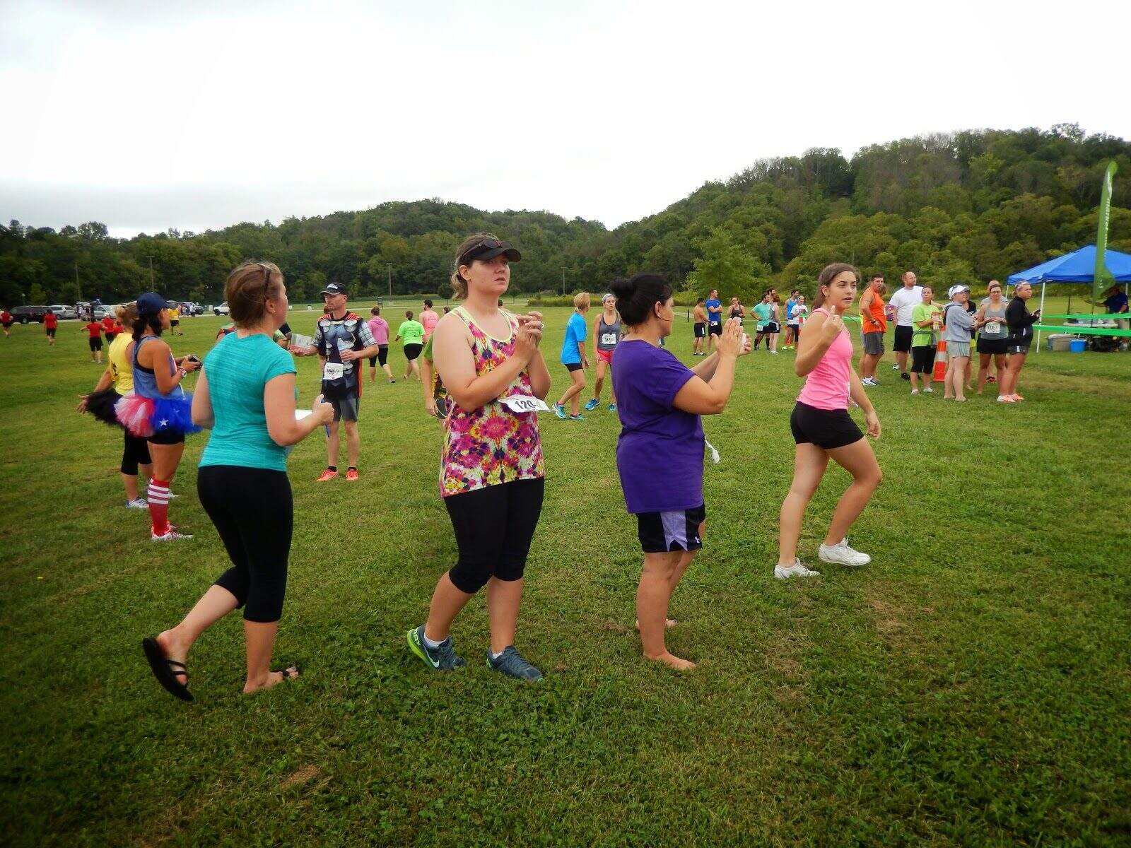 and then walking to the last exchange spot, where we all meat up together and run the final 0.2 miles to the finish line.