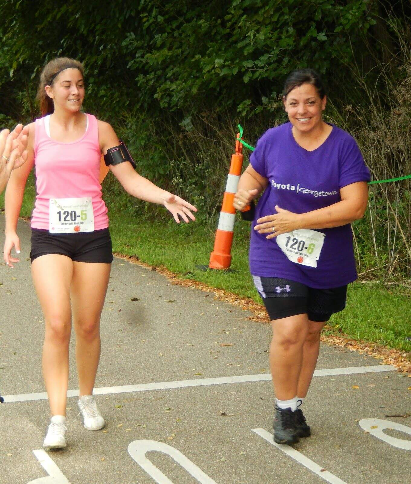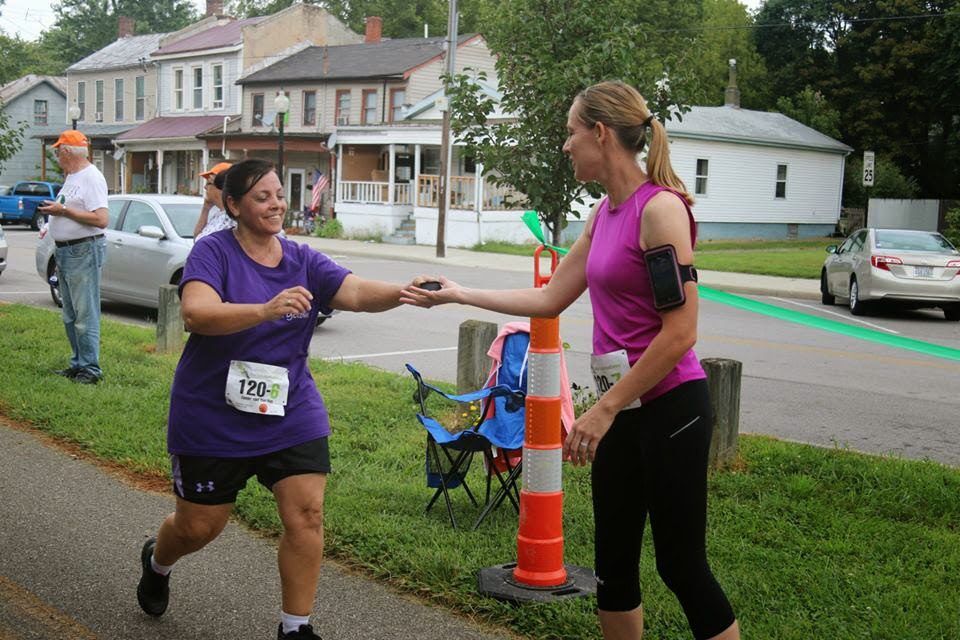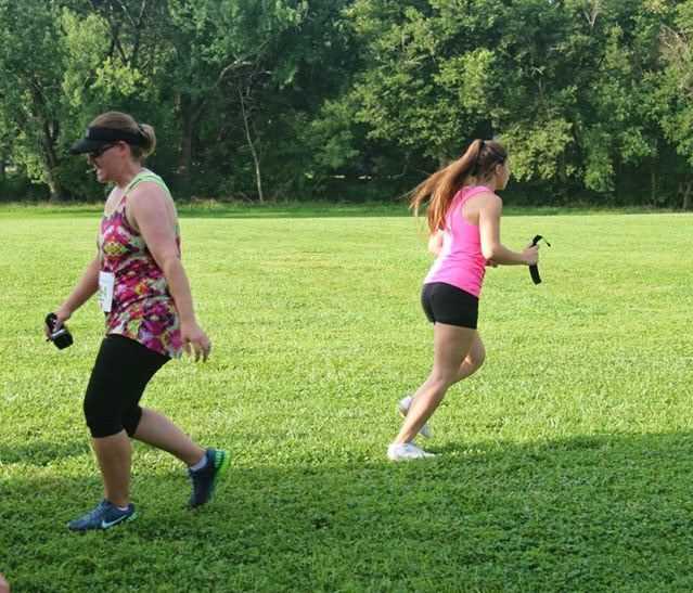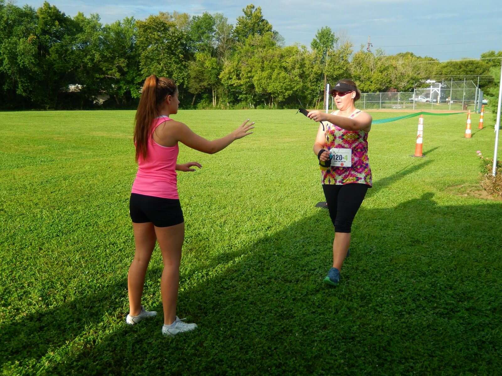 Randi made awesome time as she passed the baton to her mother, Natalie.