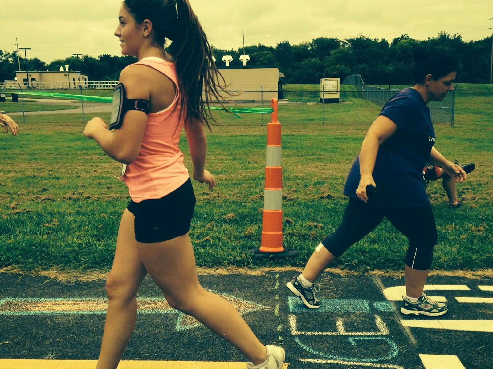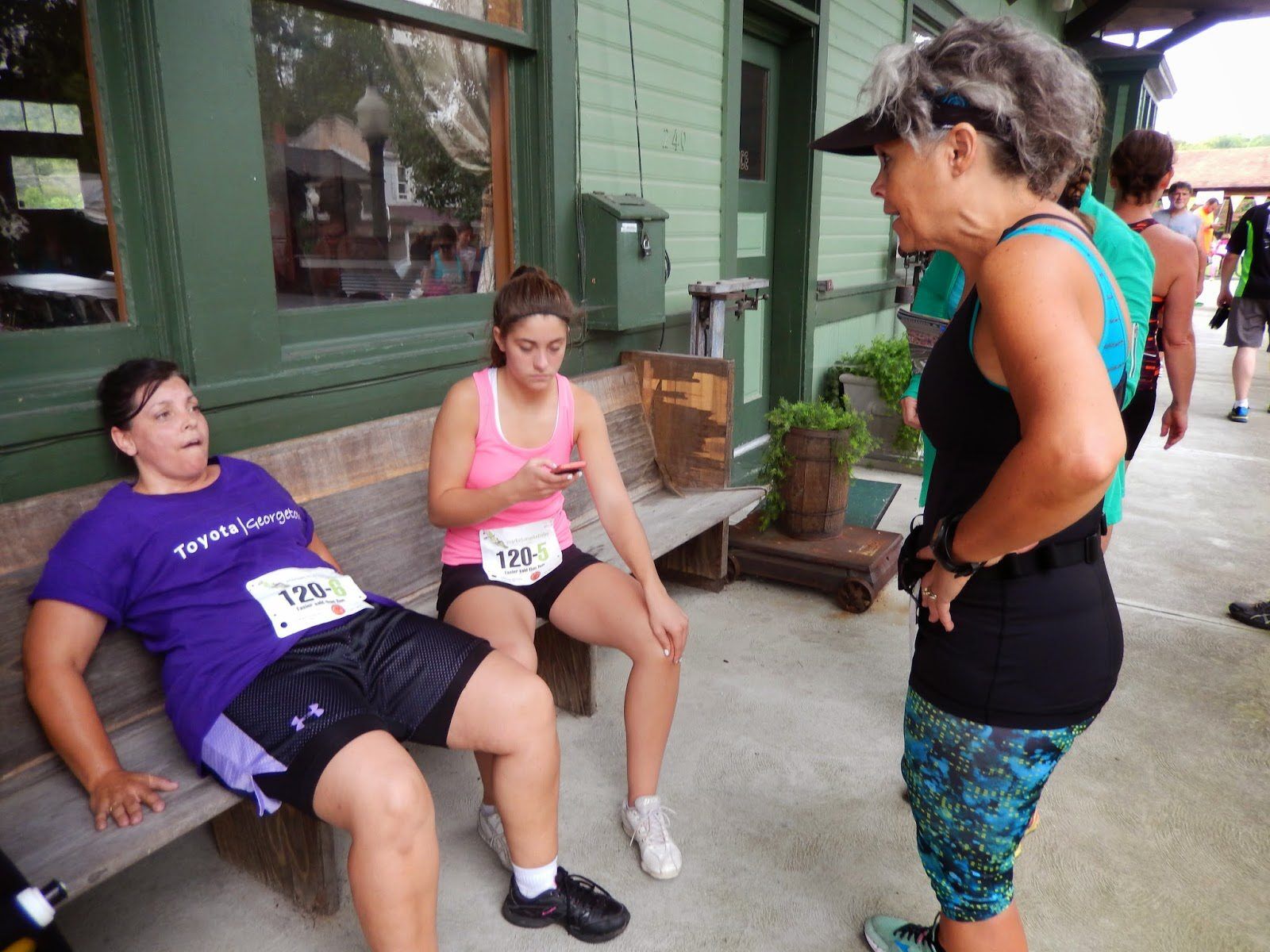 while Karen gives Natalie a little pep-talk (Natalie looks pretty much how we all fell after each of our legs).