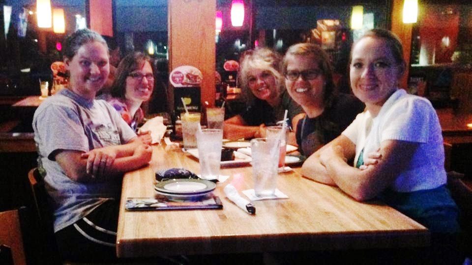 Relaxing at our table, and enjoying our free.....water bottles. This just made us look more legit (as sister-wives).